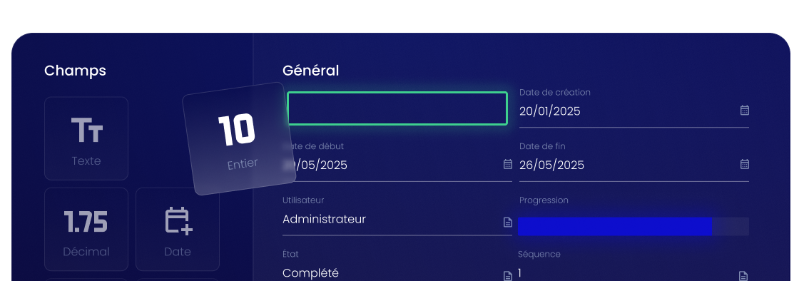 Chez Jawadsoft, notre logiciel de gestion intégré est conçu sur une plateforme Low Code. Cela signifie que vous pouvez facilement ajouter des fonctionnalités complémentaires, sans avoir à tout coder pour personnaliser le module en fonction des besoins de l’entreprise. La plateforme No Code de Jawadsoft permet de personnaliser très facilement des applications en quelques clics avec le studio intégré. Un simple glisser-déposer permet de paramétrer en No Code l’interface de notre application métier comme vous le désirez afin que cette dernière corresponde à ses besoins, mais aussi de la faire évoluer en même temps que les processus métiers de votre entreprise.